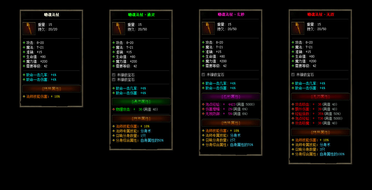 法师介绍:法师武器附带技能威力增加,越高品质武器召唤分身更强。