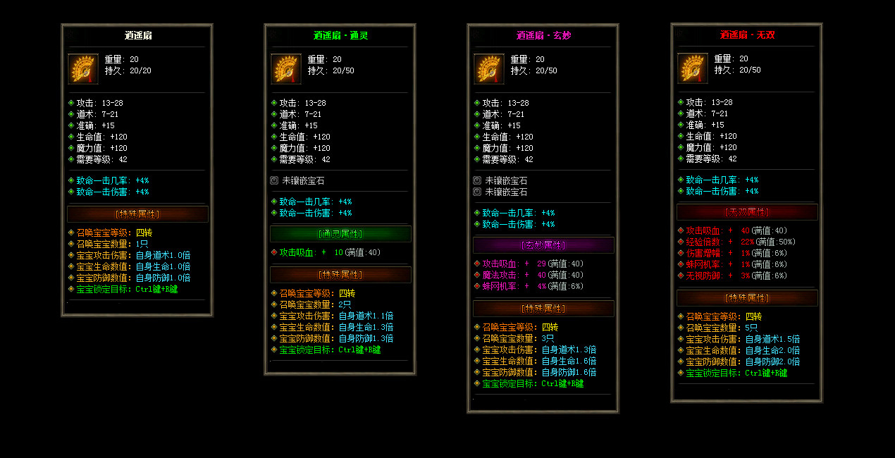 道士介绍:道士武器越高品质召唤宝宝更多,宝宝更高级。属性更高。